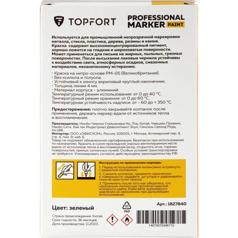 Маркер промышленный лаковый Topfort ZP1501 зелёный 4 мм (1827840)