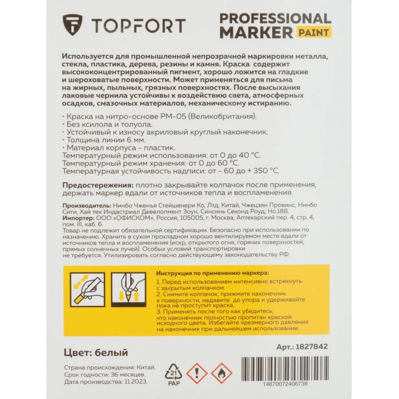 Маркер промышленный лаковый Topfort ZP1800 белый 3-6 мм (1827842)