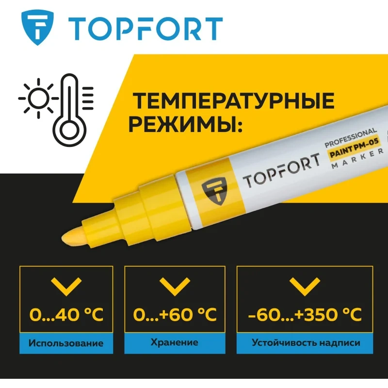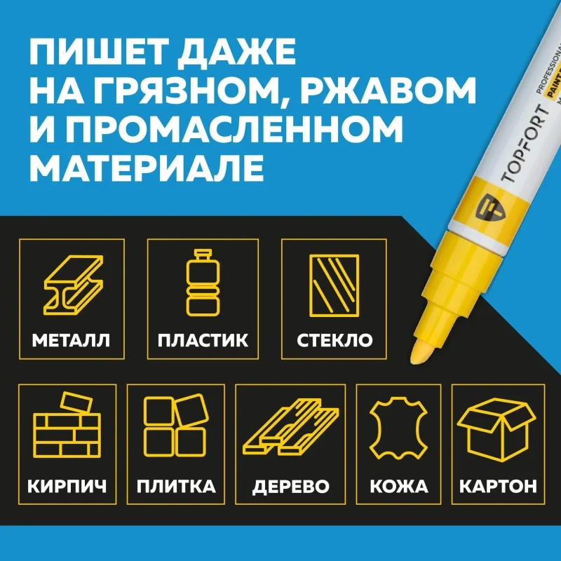 Маркер промышленный лаковый Topfort ZP2502 жёлтый 6-8 мм (1827853)
