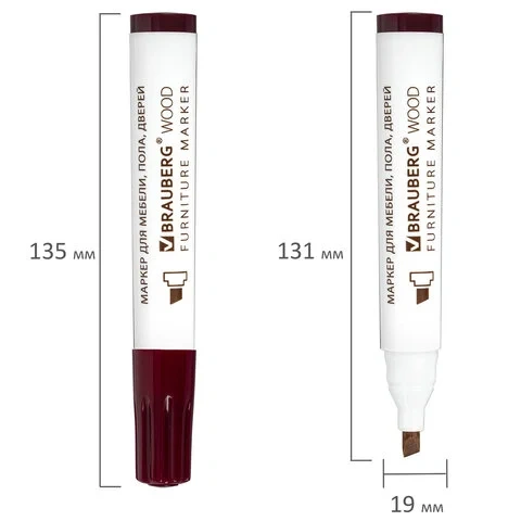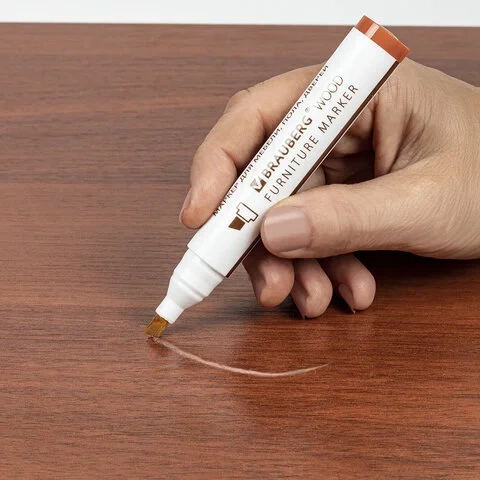 Набор маркеров для мебели из 6 цветов (венге, красное дерево, вишня, грецкий орех, дуб, клен) предназначен для маскировки царапин и сколов на мебели, напольном покрытии, дверях и других изделиях из дерева. Маркер обладает круглой формой корпуса из пластика, диаметр которого 19 мм. Скошенный наконечник позволяет наносить краску со штрихом от 1 до 5 мм. Особая нестираемая основа краски обеспечивает такие качества, как стойкость к воздействию воды, ультрафиолету, низких и высоких температур. Благодаря спиртовой основе краска быстро сохнет, что позволяет наносить несколько слоев за короткий промежуток времени. Изделие не перезаправляется. Плотно закрывается колпачком, что предотвращает высыхание наконечника и чернил. Цвет колпачков соответствует цвету чернил.