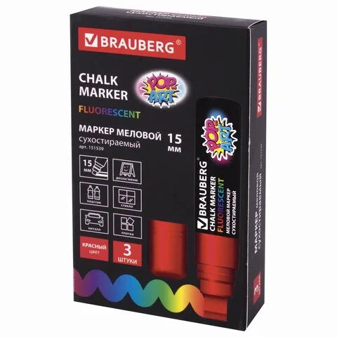 Маркер меловой Brauberg Pop-art красный, 15мм, пулевидный наконечник