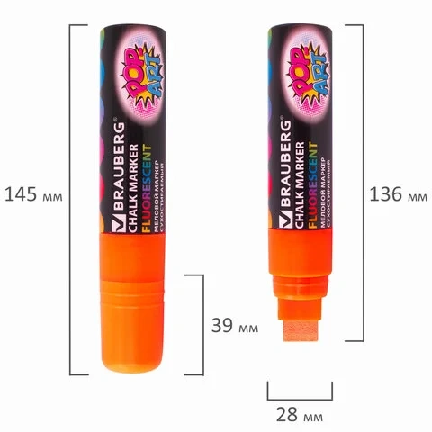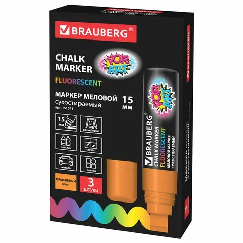 Маркер меловой Brauberg Pop-art оранжевый, 15мм, пулевидный наконечник