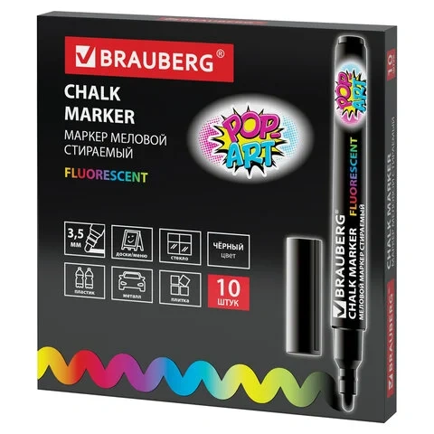 Маркер меловой Brauberg Pop-Art черный, сухостираемый, для гладких поверхностей, 3.5 мм
