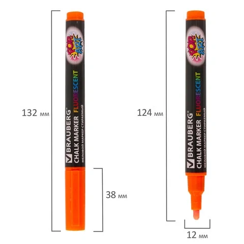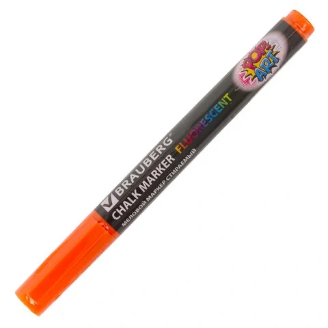 Маркер меловой Brauberg Pop-Art оранжевый, сухостираемый, для гладких поверхностей, 3.5 мм