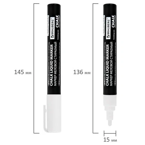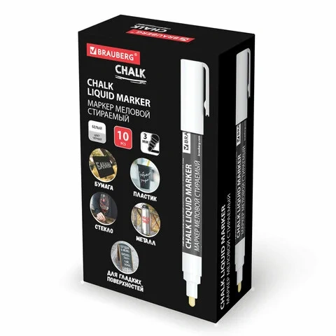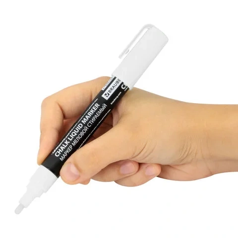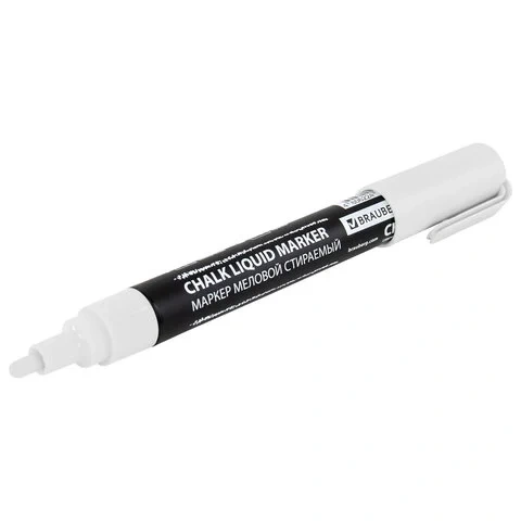 Маркер меловой CHALK LIQUID MARKER, БЕЛЫЙ, 3 мм, стираемый, BRAUBERG 'CHALK', 152585