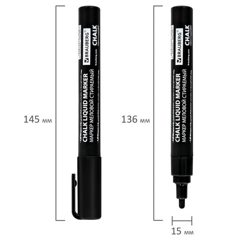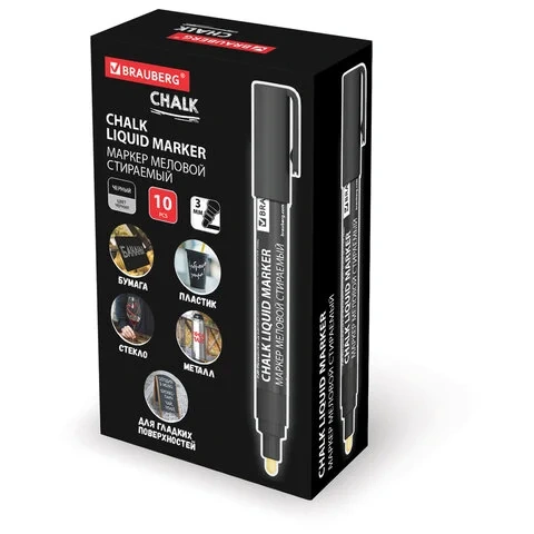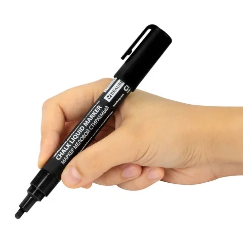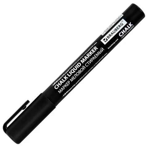 Маркер меловой CHALK LIQUID MARKER, ЧЕРНЫЙ, 3 мм, стираемый, BRAUBERG 'CHALK', 152600