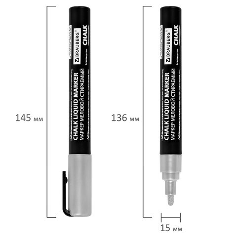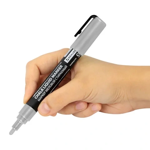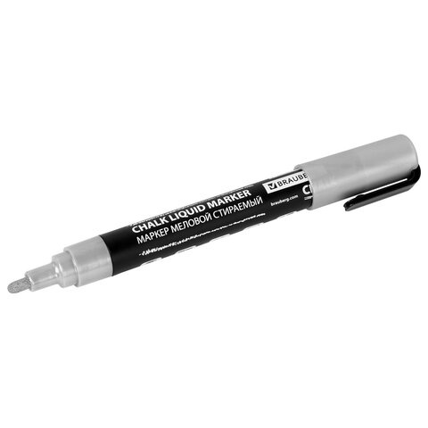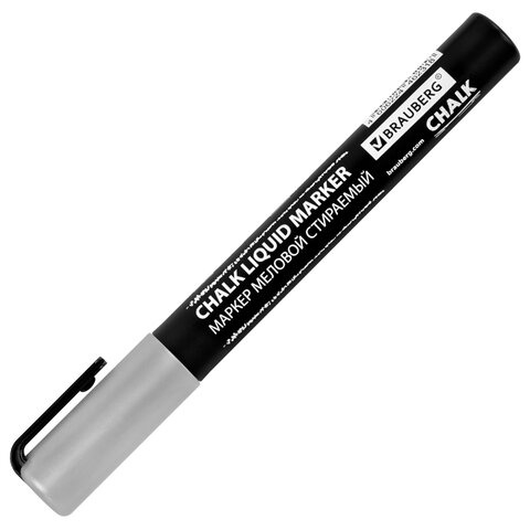 Маркер меловой CHALK LIQUID MARKER, СЕРЕБРИСТЫЙ, 3 мм, стираемый, BRAUBERG 'CHALK', 152593