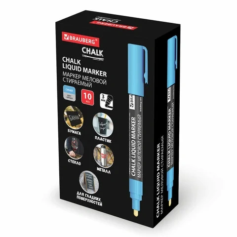 Маркер меловой CHALK LIQUID MARKER, СИНИЙ, 3 мм, стираемый, BRAUBERG 'CHALK', 152592