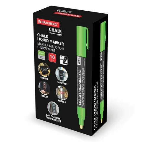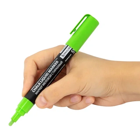 Маркер меловой CHALK LIQUID MARKER, ЗЕЛЕНЫЙ, 3 мм, стираемый, BRAUBERG 'CHALK', 152587