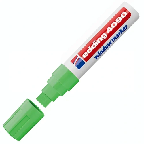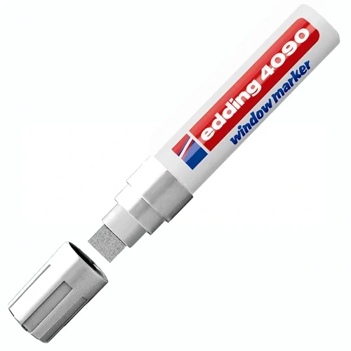 Корпус маркера Edding изготовлен из прочного пластика. Маркер Edding-4090 имеет устойчивый к стиранию широкий клиновидный наконечник.