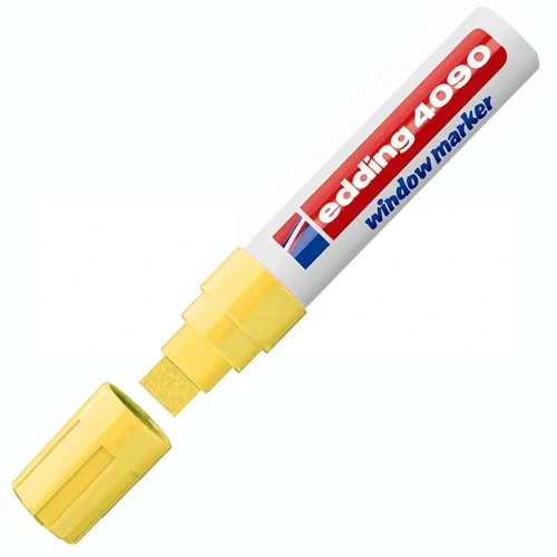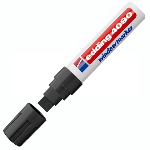 Корпус маркера Edding изготовлен из прочного пластика. Маркер Edding-4090 имеет устойчивый к стиранию широкий клиновидный наконечник.