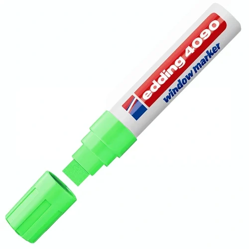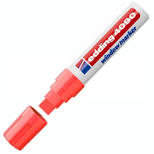 Корпус маркера Edding изготовлен из прочного пластика. Маркер Edding-4090 имеет устойчивый к стиранию широкий клиновидный наконечник.
