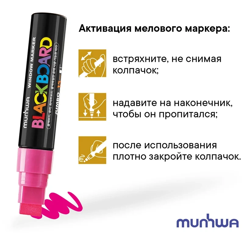 Маркер меловой Munhwa Black Board Jumbo розовый, 15мм, прямоугольный наконечник, на водной основе