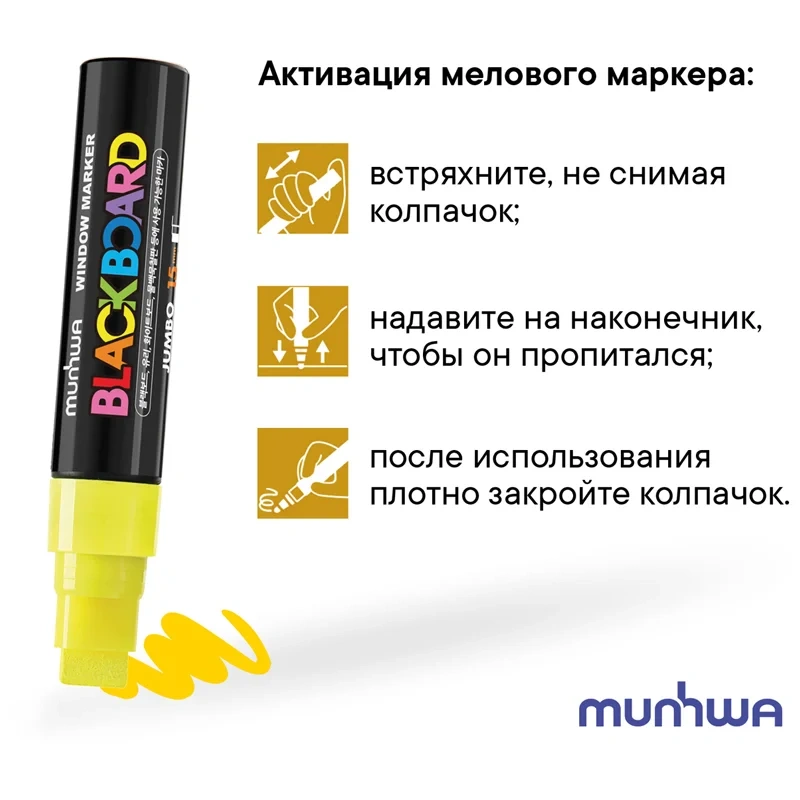 Маркер меловой Munhwa Black Board Jumbo желтый, 15мм, прямоугольный наконечник, на водной основе