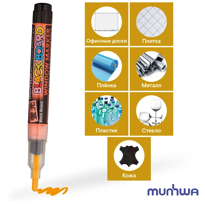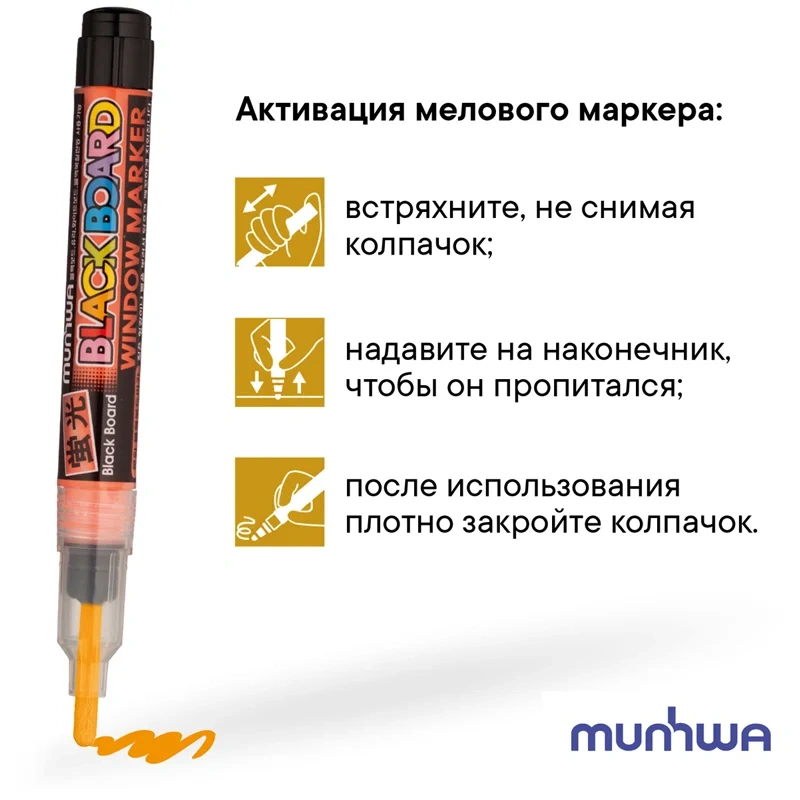 Маркер меловой Munhwa Black Board Marker оранжевый, 3мм, круглый наконечник, на водной основе
