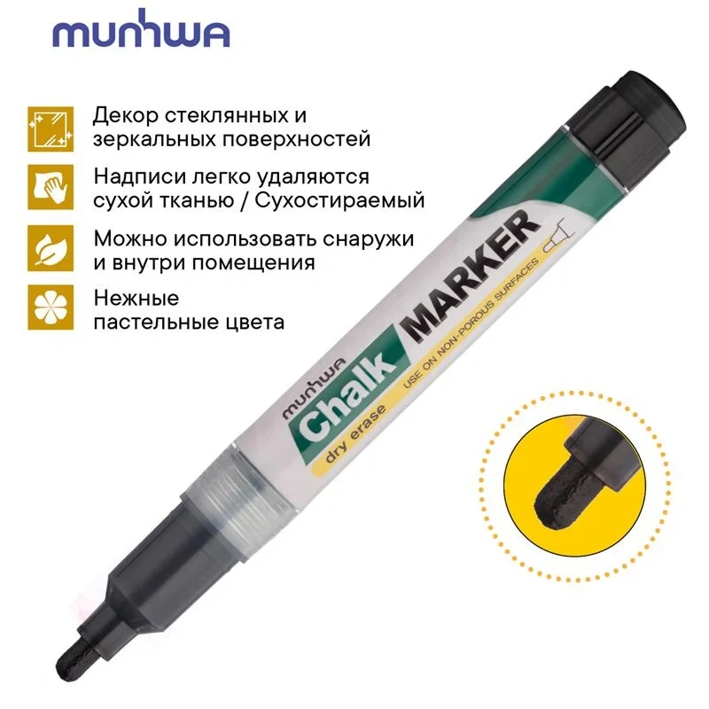 Меловой маркер от MunHwa 'Chalk Marker' — это лучший помощник для воплощения всех креативных решений в жизнь.