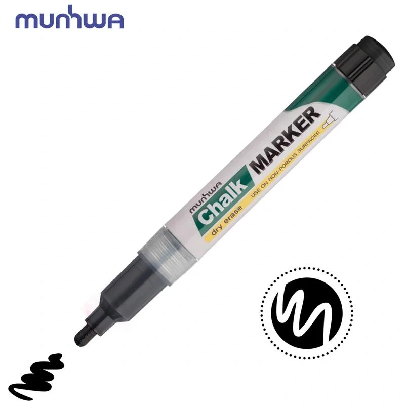 Маркер меловой Munhwa черный, 3мм, круглый наконечник, сухостираемый