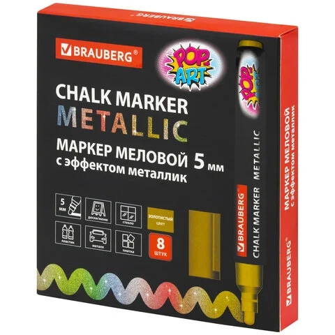Маркер меловой Brauberg Pop-Art золотой, 5мм, круглый наконечник