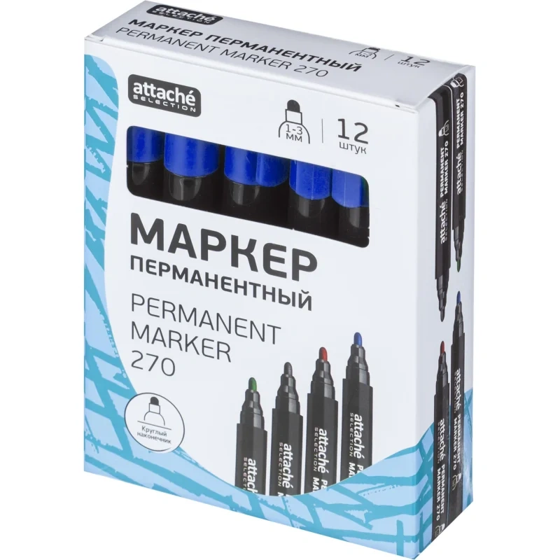 Маркер перманентный Attache 270 синий, 1-3мм, круглый наконечник
