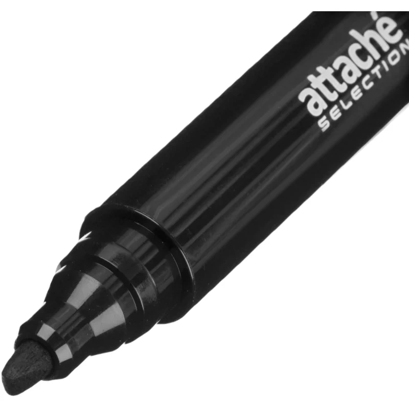 Маркер перманентный Attache Selection в прочном пластиковом корпусе. Нестираемые светостойкие чернила на спиртовой основе, не содержат ксилол и толуол. Идеально подходит для надписей на металле, пластике, дереве и картоне, а также резине, стекле, камне, кирпиче, бетоне, пленке. Прочный акриловый наконечник скошенной формы позволяет провести линию толщиной от 2 до 5 мм. Цвет — черный. Длина линии письма — 500 м.