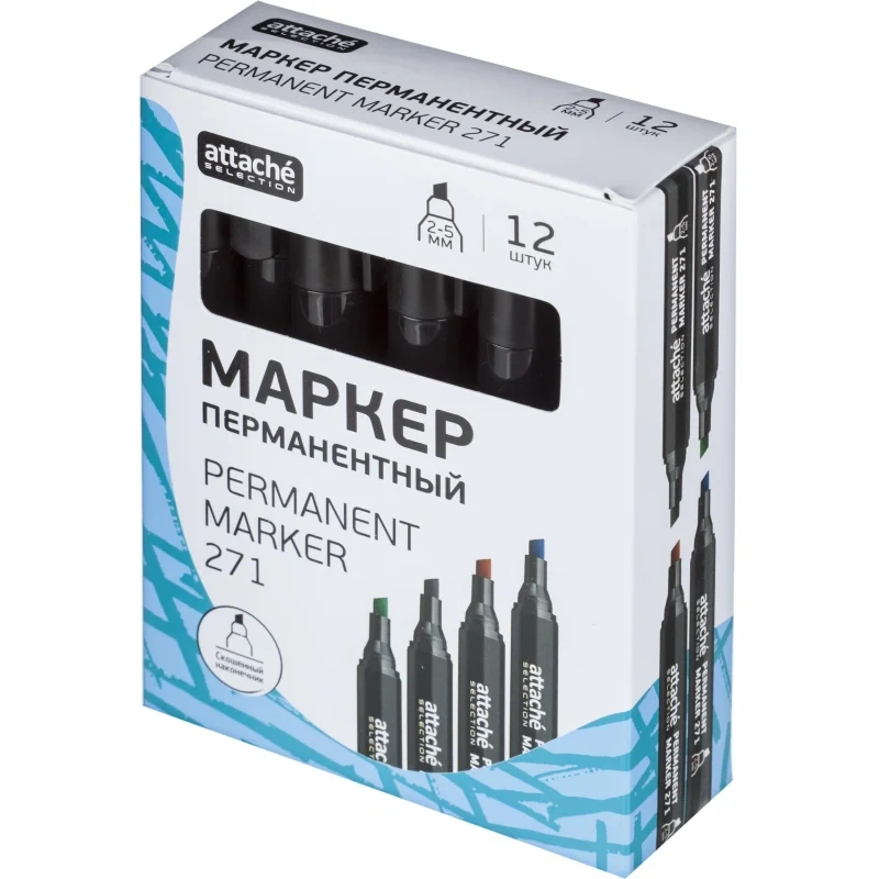Маркер перманентный Attache 271 черный, 2-5мм, скошенный наконечник