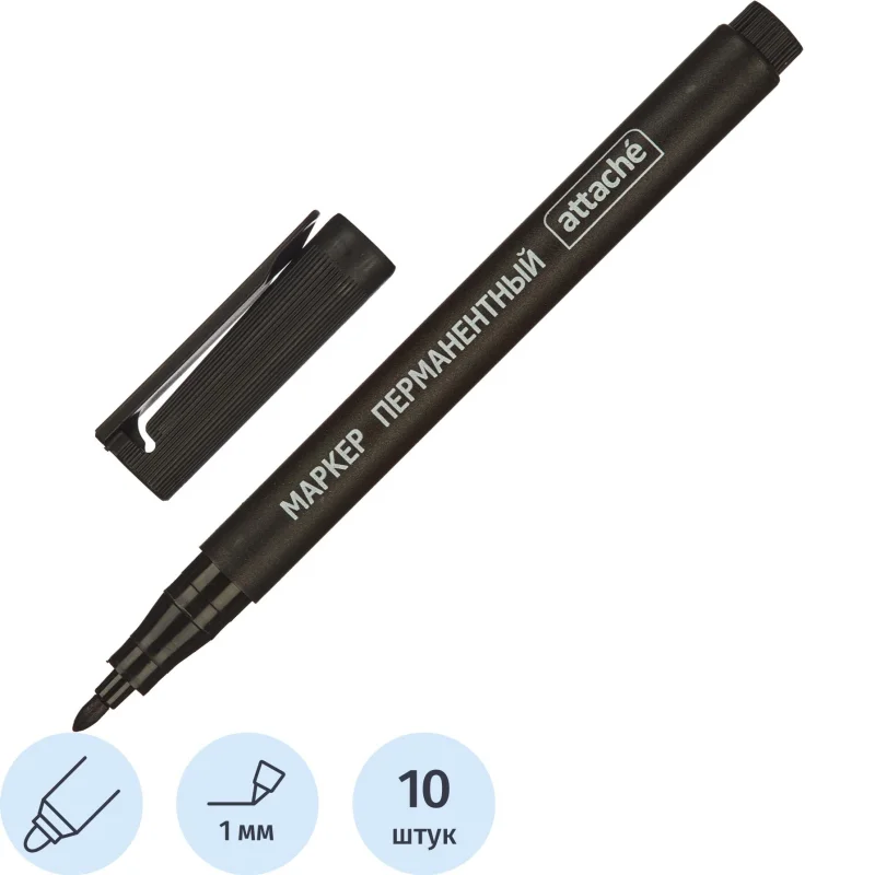 Маркер перманентный ATTACHE черный 1 мм. 10 шт/уп (867249)