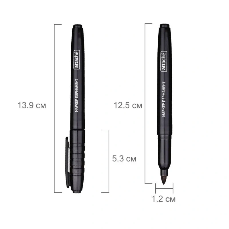 Особая нестираемая основа перманентного маркера Attache черного цвета обеспечивает такие качества, как стойкость к воздействию воды, ультрафиолета, низких и высоких температур. Можно маркировать, среди прочего, пластмассовые, деревянные, металлические, стеклянные или картонные предметы. Цвет колпачка соответствует цвету чернил. Фетровый, круглый, эластичный наконечник обладает повышенной износостойкостью и обеспечивает экономный расход чернил. Отличается продленной линией письма. Изделие не перезаправляется. Плотно закрывается колпачком, что предотвращает высыхание наконечника и чернил. Толщина линии письма — 1,5-3 мм в зависимости от угла наклона. Спиртовая основа быстросохнущих чернил. Круглая форма корпуса из пластика, колпачок снабжен клипом. Перманентный маркер Attache должен быть всегда под рукой!