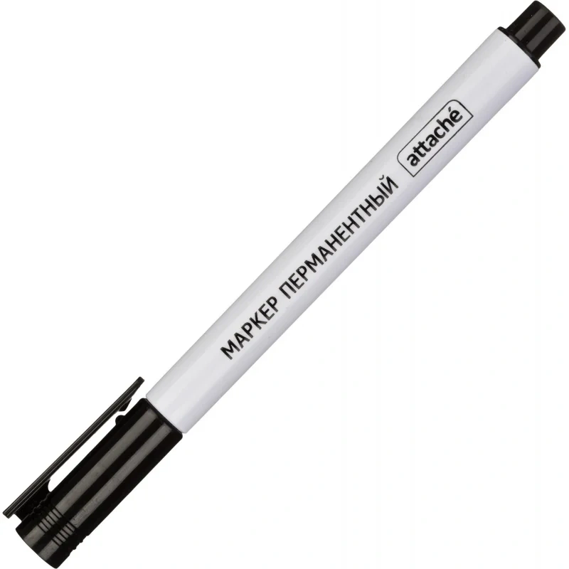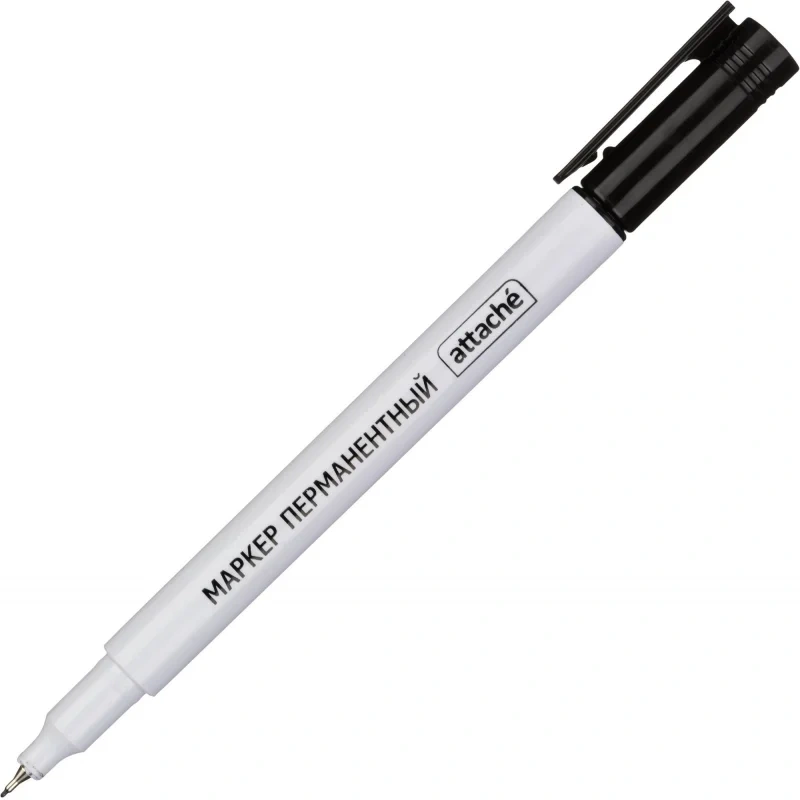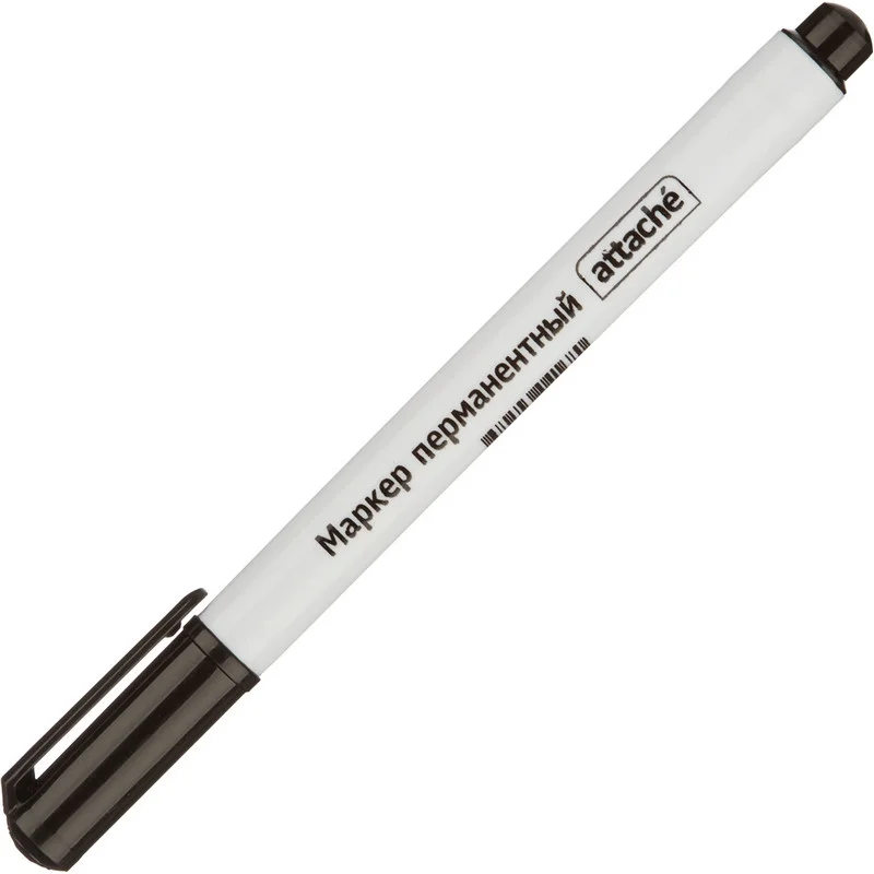 Особая нестираемая основа перманентного маркера Attache черного цвета обеспечивает такие качества, как стойкость к воздействию воды, ультрафиолета, низких и высоких температур. Можно маркировать, среди прочего, пластмассовые, деревянные, металлические, стеклянные или картонные предметы. Цвет колпачка соответствует цвету чернил. Игольчатый наконечник обеспечивает экономный расход чернил. Изделие не перезаправляется. Плотно закрывается колпачком, что предотвращает высыхание наконечника и чернил. Толщина линии письма — 0,5 мм, благодаря чему можно создавать тонкие, аккуратные линии. Спиртовая основа быстросохнущих чернил. Круглая форма корпуса из прочного пластика, колпачок снабжен клипом. Перманентный маркер Attache должен быть всегда под рукой! Внимание! Сразу после использования плотно закрывайте колпачком (до щелчка).