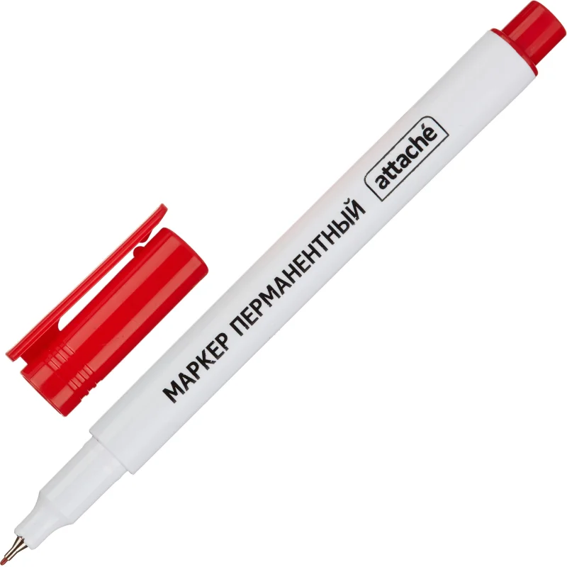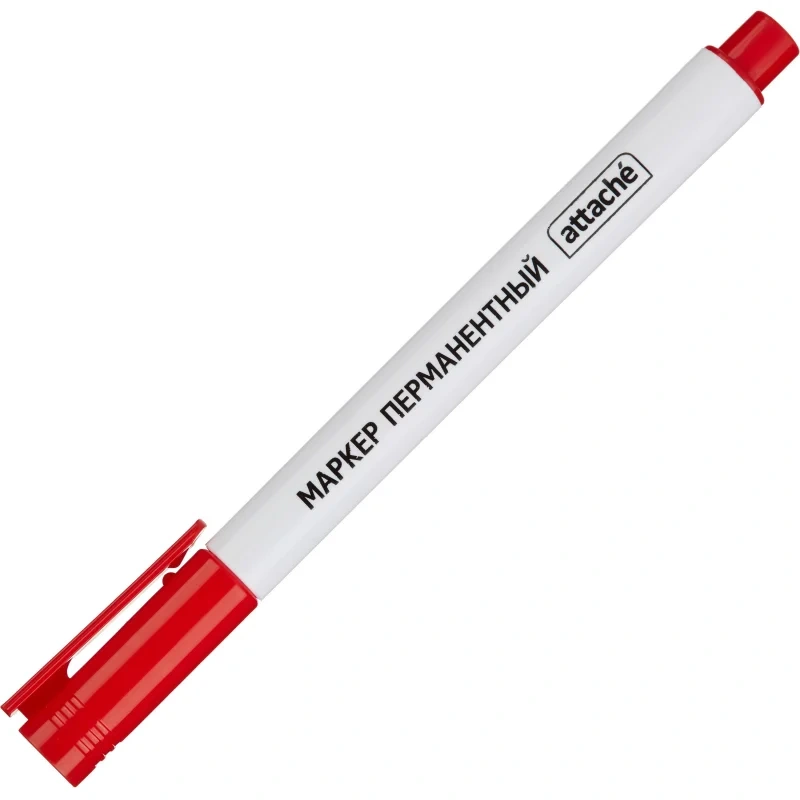 Особая нестираемая основа перманентного маркера Attache красного цвета обеспечивает такие качества, как стойкость к воздействию воды, ультрафиолета, низких и высоких температур. Можно маркировать, среди прочего, пластмассовые, деревянные, металлические, стеклянные или картонные предметы. Цвет колпачка соответствует цвету чернил. Игольчатый наконечник обеспечивает экономный расход чернил. Изделие не перезаправляется. Плотно закрывается колпачком, что предотвращает высыхание наконечника и чернил. Толщина линии письма — 0,5 мм, благодаря чему можно создавать тонкие, аккуратные линии. Спиртовая основа быстросохнущих чернил. Круглая форма корпуса из прочного пластика, колпачок снабжен клипом. Перманентный маркер Attache должен быть всегда под рукой! Внимание! Сразу после использования плотно закрывайте колпачком (до щелчка).