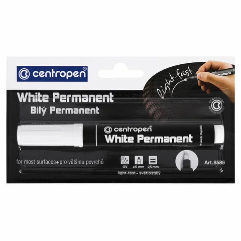 Маркер перманентный БЕЛЫЙ CENTROPEN, круглый наконечник, 2,5 мм, блистер, 8586, 5 8586 6000