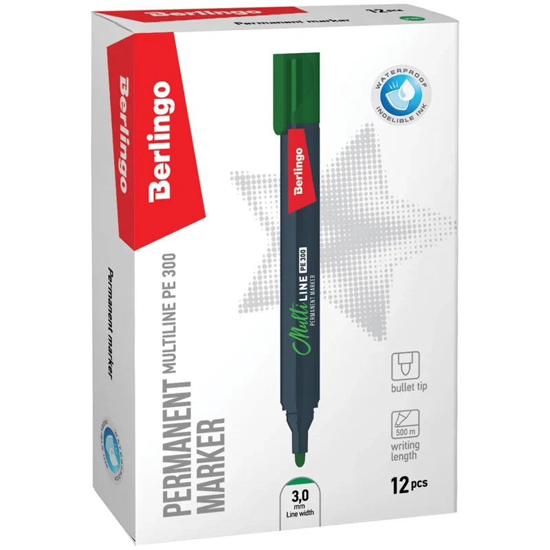 Маркер перманентный Berlingo MultiLine PE300 зеленый, 3мм, пулевидный наконечник