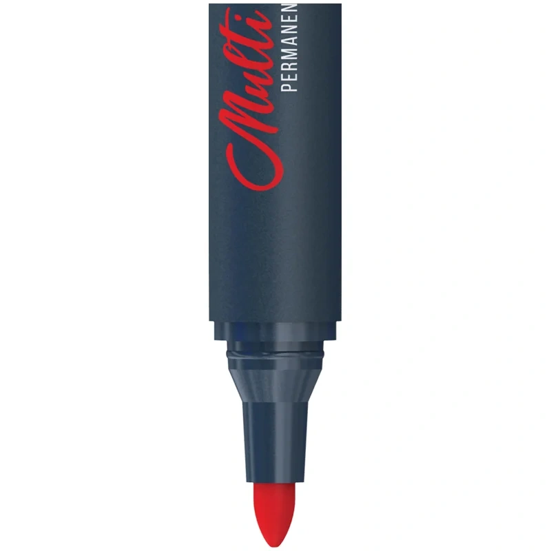Перманентный маркер на спиртовой основе. Предназначен для письма на большинстве поверхностей: бумаге, коже, пластмассе, металле, резине, ткани. Устойчив к стиранию, воде, свету, температурным и атмосферным воздействиям. Толщина линии 3мм. Цвет красный. Упаковка - картонная коробка 12 штук.