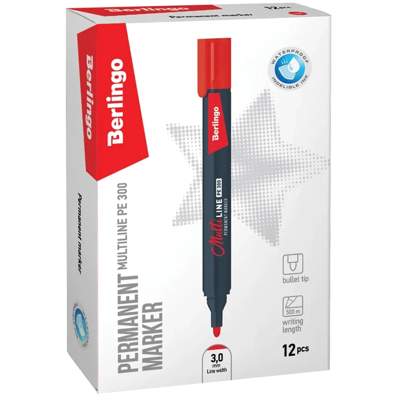 Маркер перманентный Berlingo MultiLine PE301 красный, 3мм, пулевидный наконечник