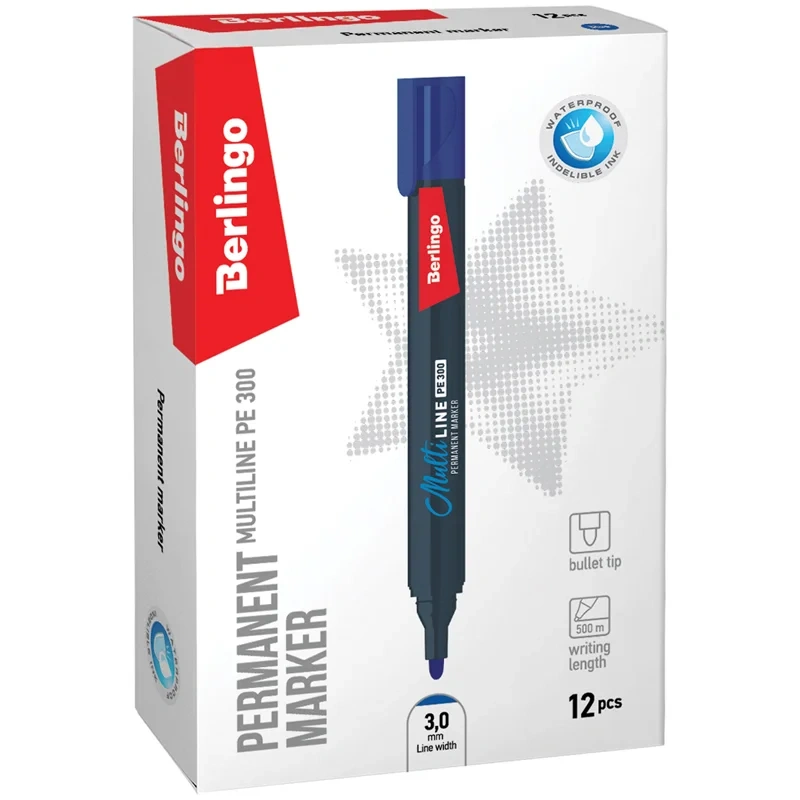 Маркер перманентный Berlingo MultiLine PE303 синий, 3мм, пулевидный наконечник
