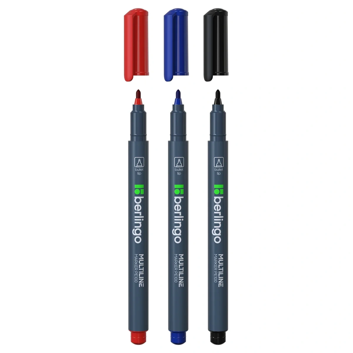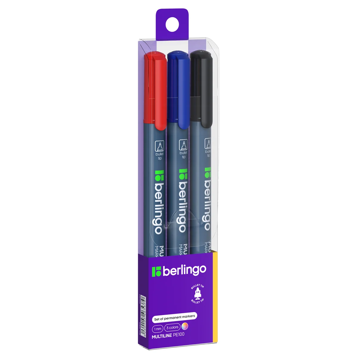Набор перманентных маркеров Berlingo набор 3 цвета, 1мм, пулевидный наконечник