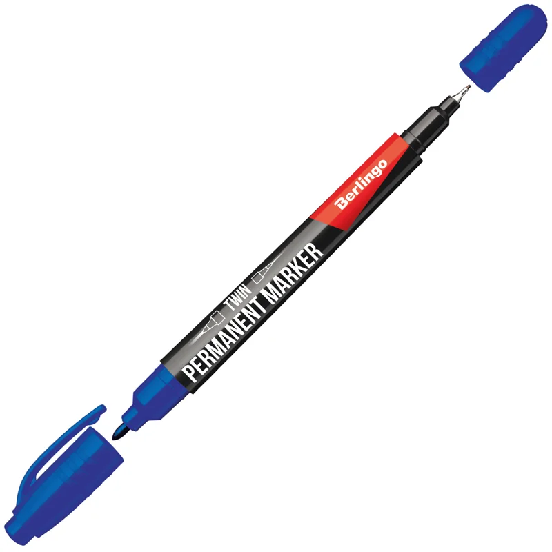 Маркер перманентный Berlingo синий, 0.5-1мм, пулевидный наконечник, двухсторонний