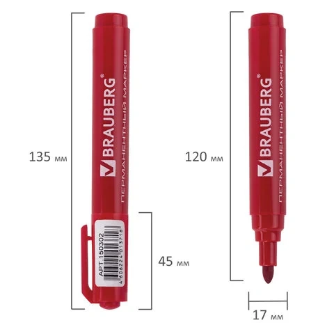 Маркер перманентный Brauberg Classic красный, 3мм, круглый наконечник