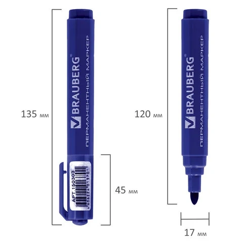 Маркер перманентный Brauberg Classic синий, 3мм, круглый наконечник