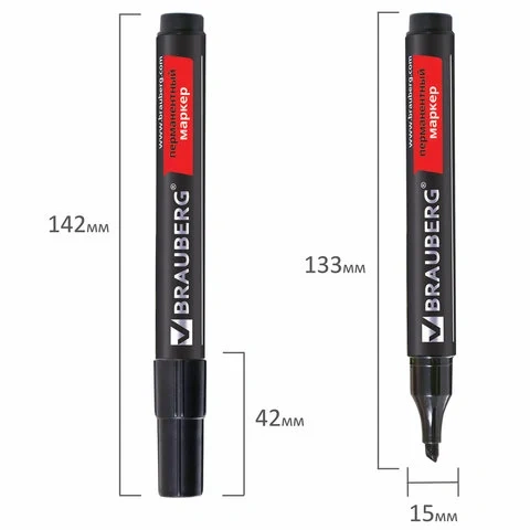 Маркер перманентный Brauberg Contract черный, 1-5мм, скошенный наконечник