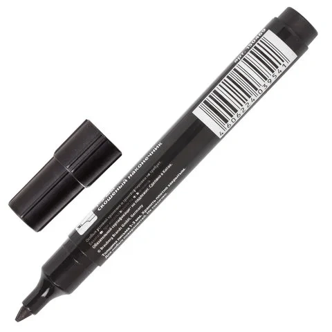 Особая нестираемая основа перманентных маркеров обеспечивает такие качества, как стойкость к воздействию воды, ультрафиолета, низких и высоких температур. Цвет колпачка соответствует цвету чернил. Фетровый наконечник обладает повышенной износостойкостью и обеспечивает экономный расход чернил. Отличается продленной линией письма. Изделие не перезаправляется. Плотно закрывается колпачком, что предотвращает высыхание наконечника и чернил. Скошенный наконечник обеспечивает толщину линии письма - 1-5 мм в зависимости от угла наклона. Спиртовая основа быстросохнущих чернил. Круглая форма корпуса из пластика, диаметр которого 15 мм.