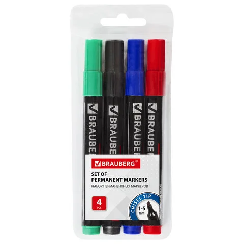 Набор перманентных маркеров Brauberg Contract набор 4 цвета, 1-5мм, скошенный наконечник