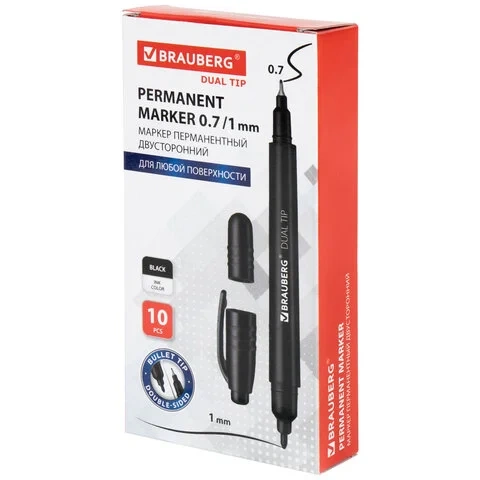 Маркер перманентный Brauberg Duo черный, наконечники 0,7/1 мм, двусторонний