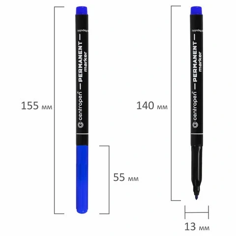 Маркер перманентный Centropen 2536 синий, 1мм, круглый наконечник