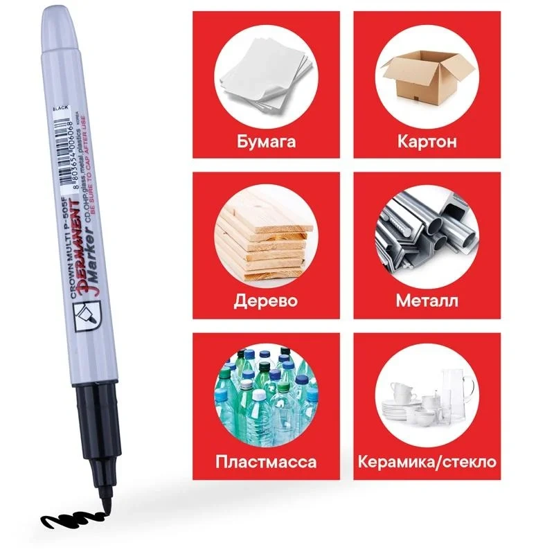 Перманентный маркер Crown Multi Marker Super Slim — деликатная маркировки на всех типах поверхностей: металл, дерево, резина, бетон, камень, кирпич, стекло, пленка, картон, CD диски.