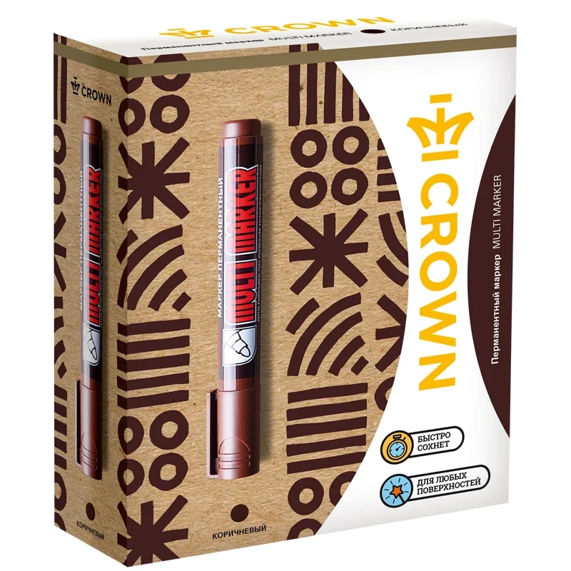 Перманентный маркер Crown Multi Marker с чернилами на спиртовой основе подходит для письма на любых поверхностях. Маркер представлен с клиновидным пишущем узлом. Цвет чернил - коричневый, толщина линии 3 мм. Длина непрерывной линии в два раза больше стандартных перманентных маркеров – 900 м. Товар упакован в картонную коробку по 12 шт. Чернила устойчивы к климатическим изменения (дождь, солнце), не стираются и не выцветают в течение длительного времени. Оставляют чёткую и однородную линию. Безопасны для использования и не содержат ксилол и толуол.