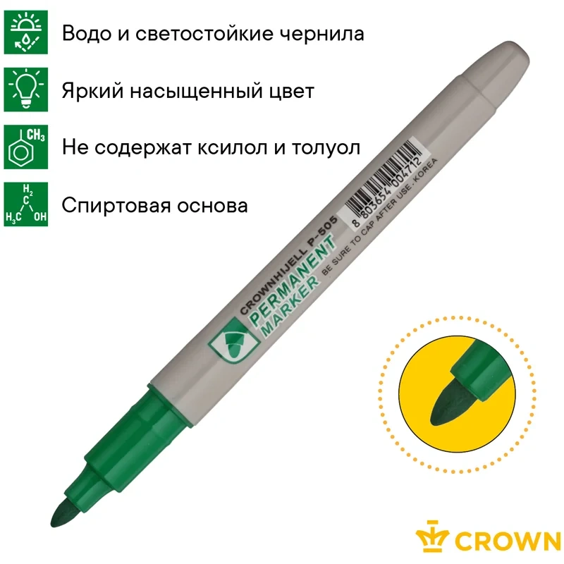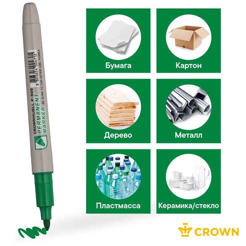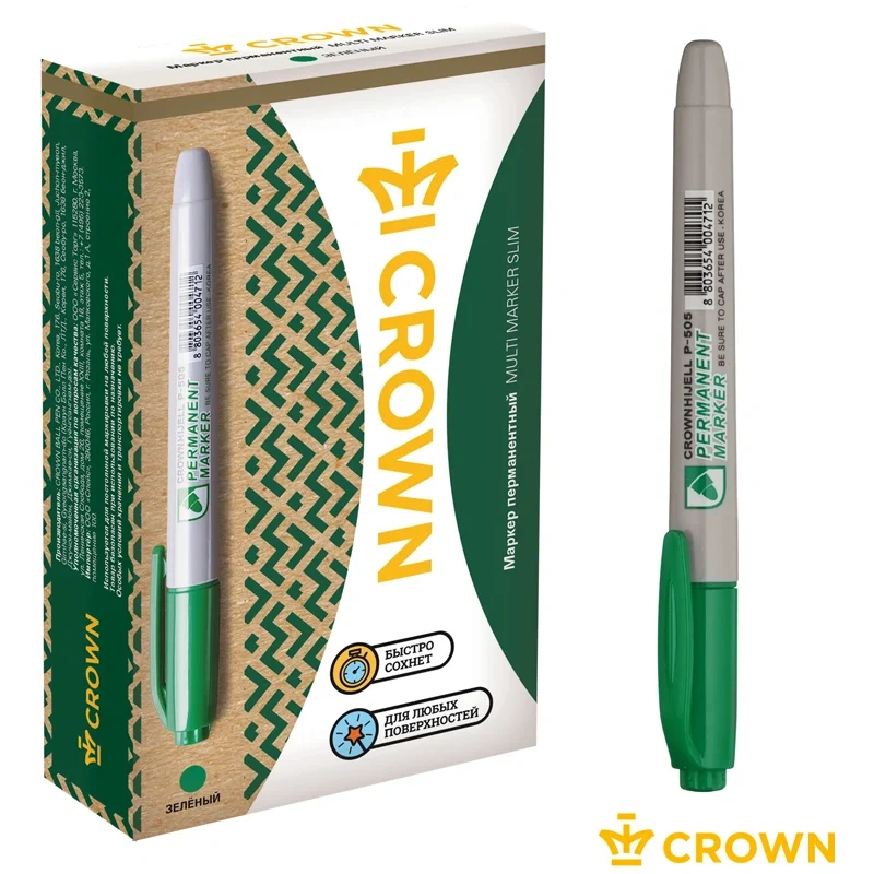 Перманентный маркер Crown 'Multi Marker Slim' - универсальное решение для маркировки на всех типах поверхностей: металл, дерево, резина, бетон/камень/кирпич, стекло, пленка, картон и др.