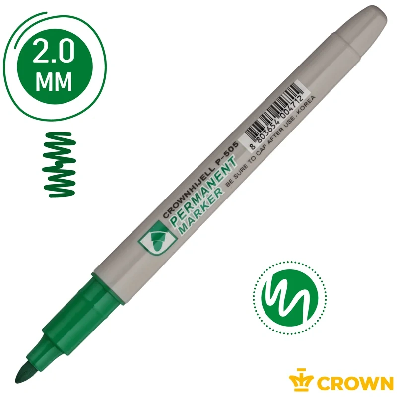 Маркер перманентный Crown Multi Marker Slim зеленый, 2мм, пулевидный наконечник