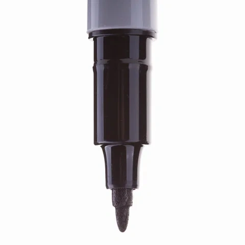 Круглый наконечник из высококачественного фиброволокна создает линии толщиной 1 мм. Чернила на спиртовой основе. Цвет чернил - черный. Упаковка: картонная коробка по 12 штук.