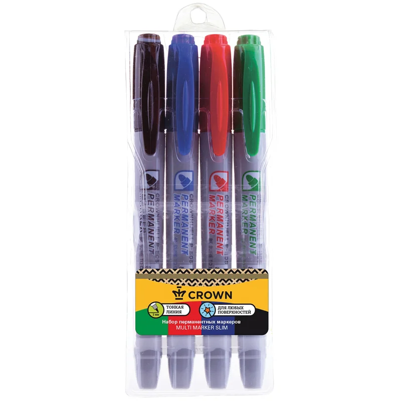 Набор перманентных маркеров Crown 'Multi Marker Slim' - универсальное решение для маркировки на всех типах поверхностей: металл, дерево, резина, бетон/камень/кирпич, стекло, пленка, картон и др.