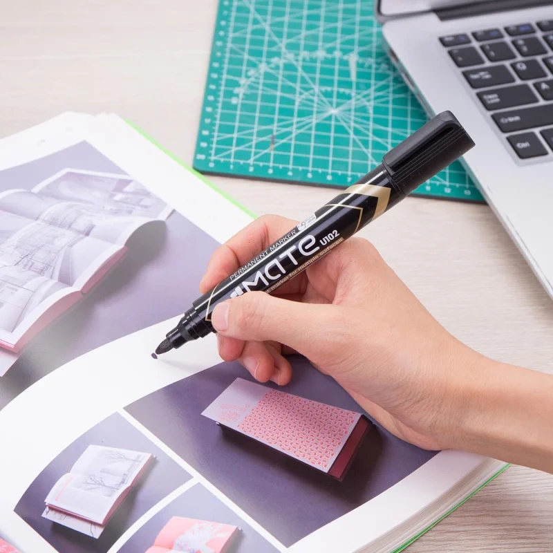 Маркер перманентный Deli Mate для повседневного использования. Благодаря использованию специальных чернил маркер является нетоксичным, быстро высыхает, не растекается при попадании влаги, обладает слабым запахом, водостойкий и устойчив к выцветанию.